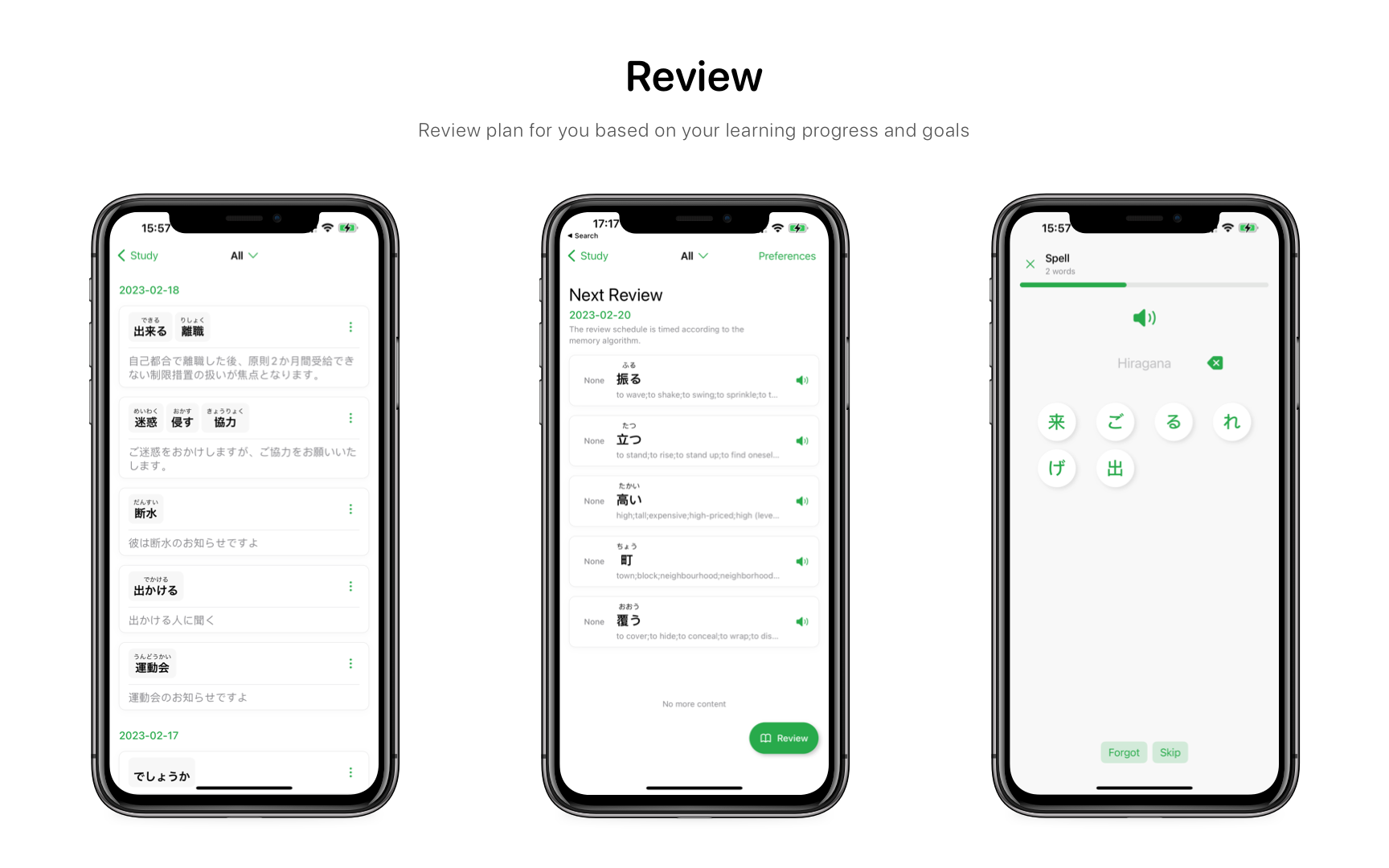 - You can collect words and sentences so Oyomi will generate a review plan for you automatically.