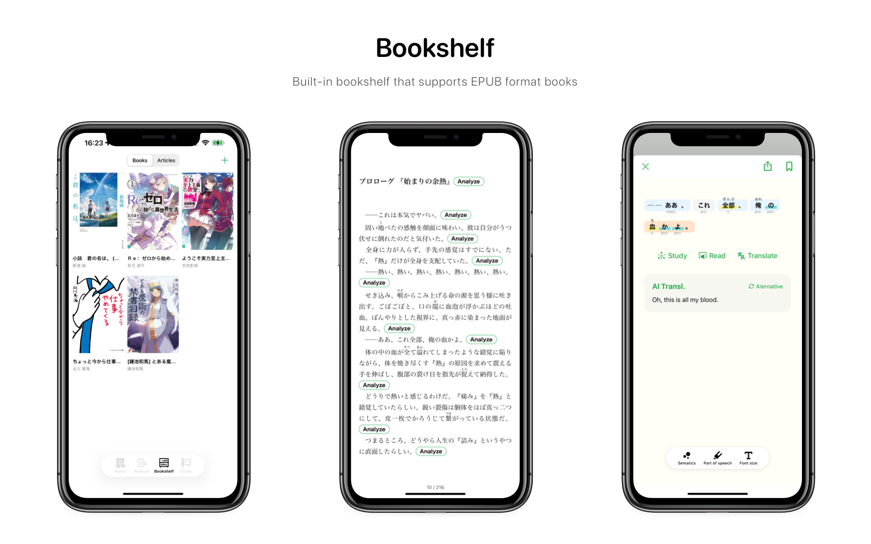 With Oyomi, you can choose any web page or EPUB book that interests you and import it into the app.